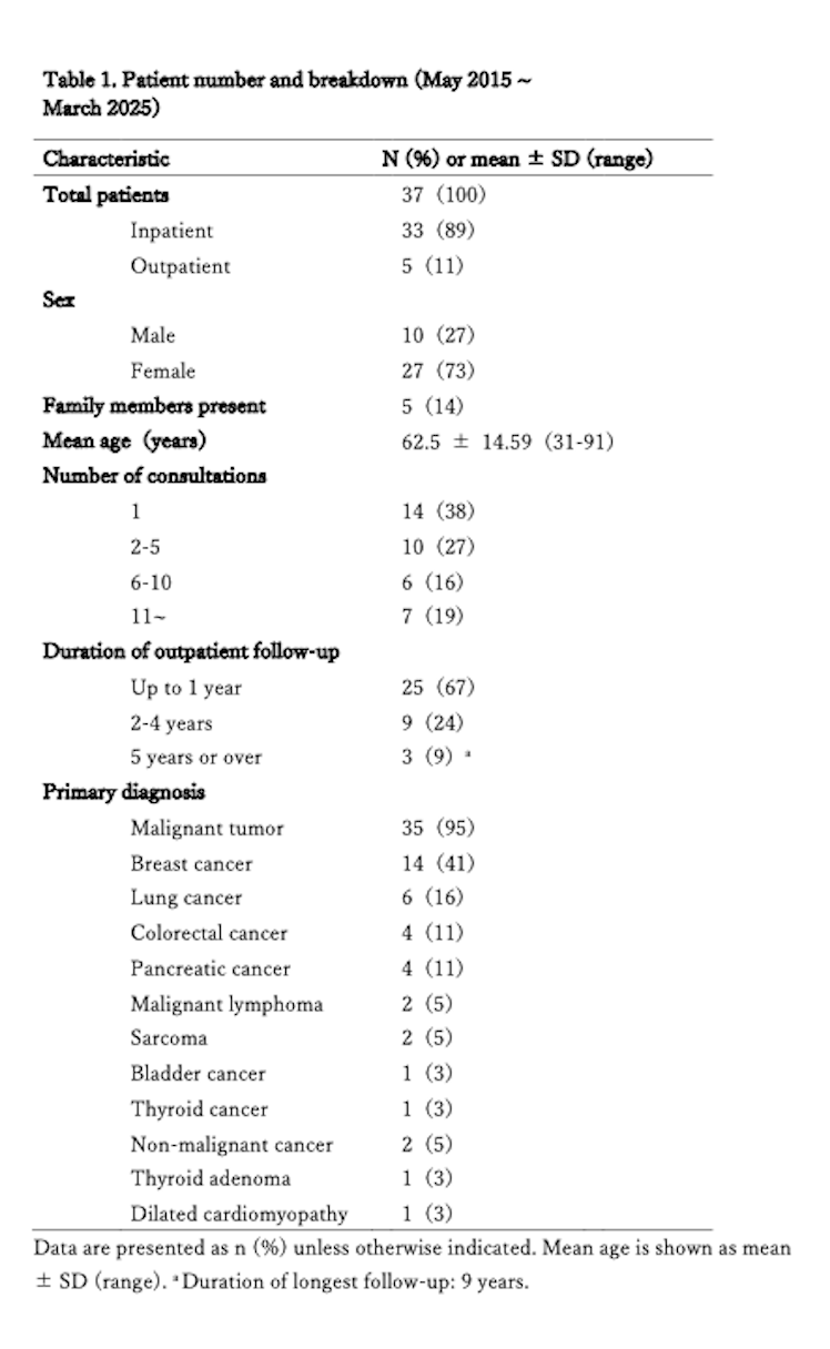 3.Ogushi Y, Sato N, Kusakabe T. Pathologist-led support in palliative cancer care: A consultative approach to enhancing patient understanding, concerns, and autonomy. Am J Hosp Palliat Care Med. 2025.https://doi.org/10.1177/10499091251385972