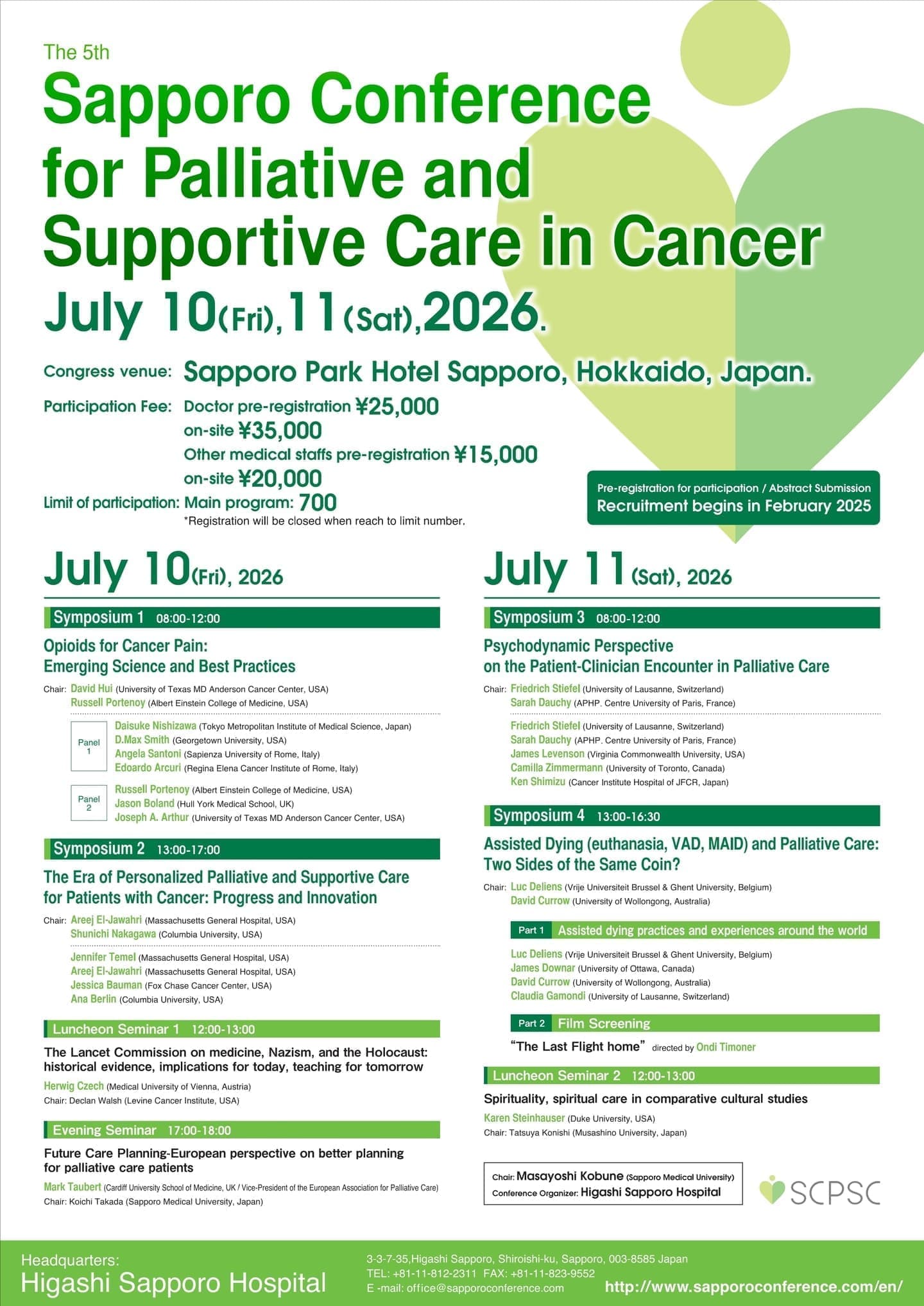 Announcement: The 5th Sapporo Conference for Palliative and Supportive Care in Cancer